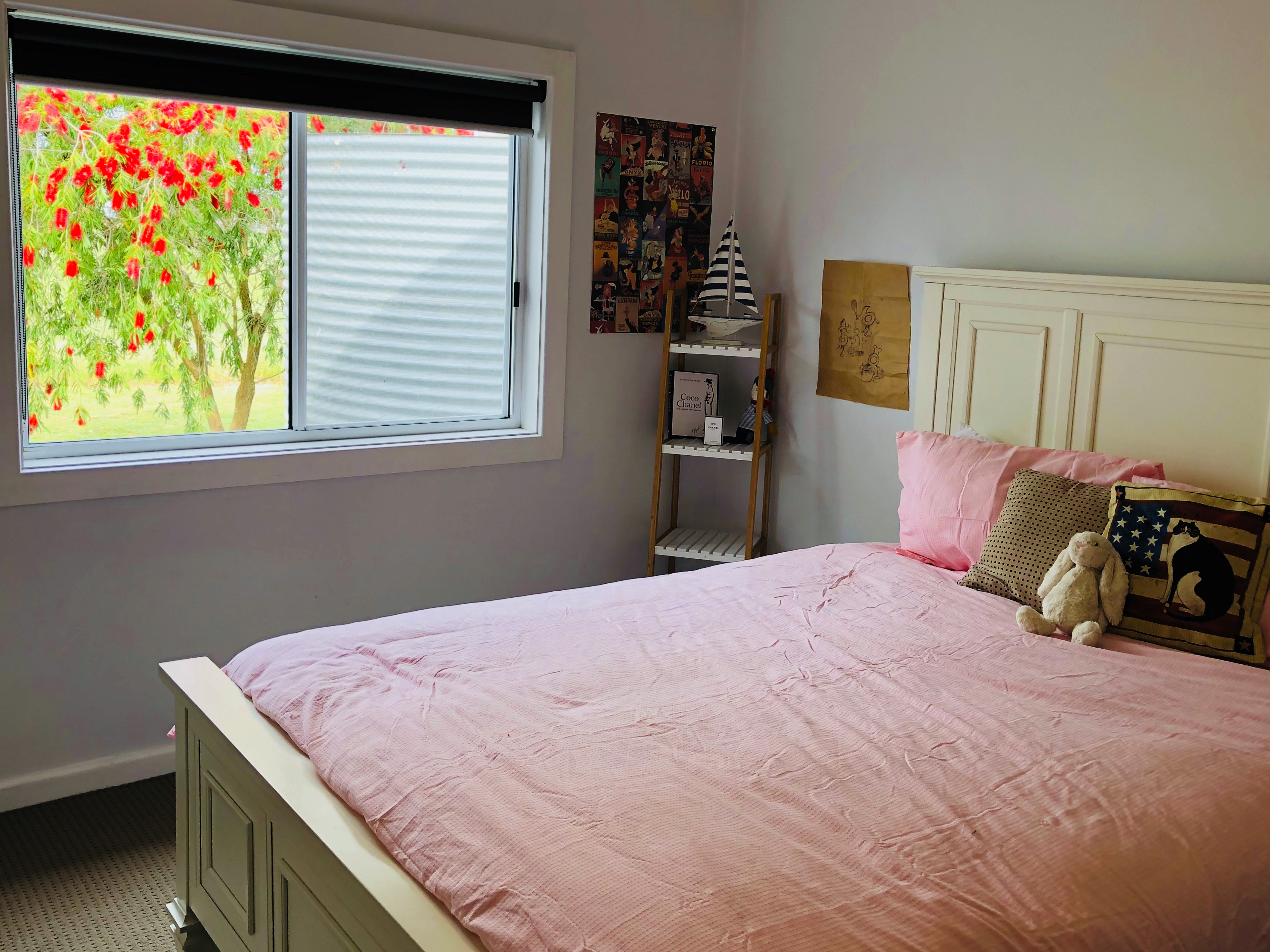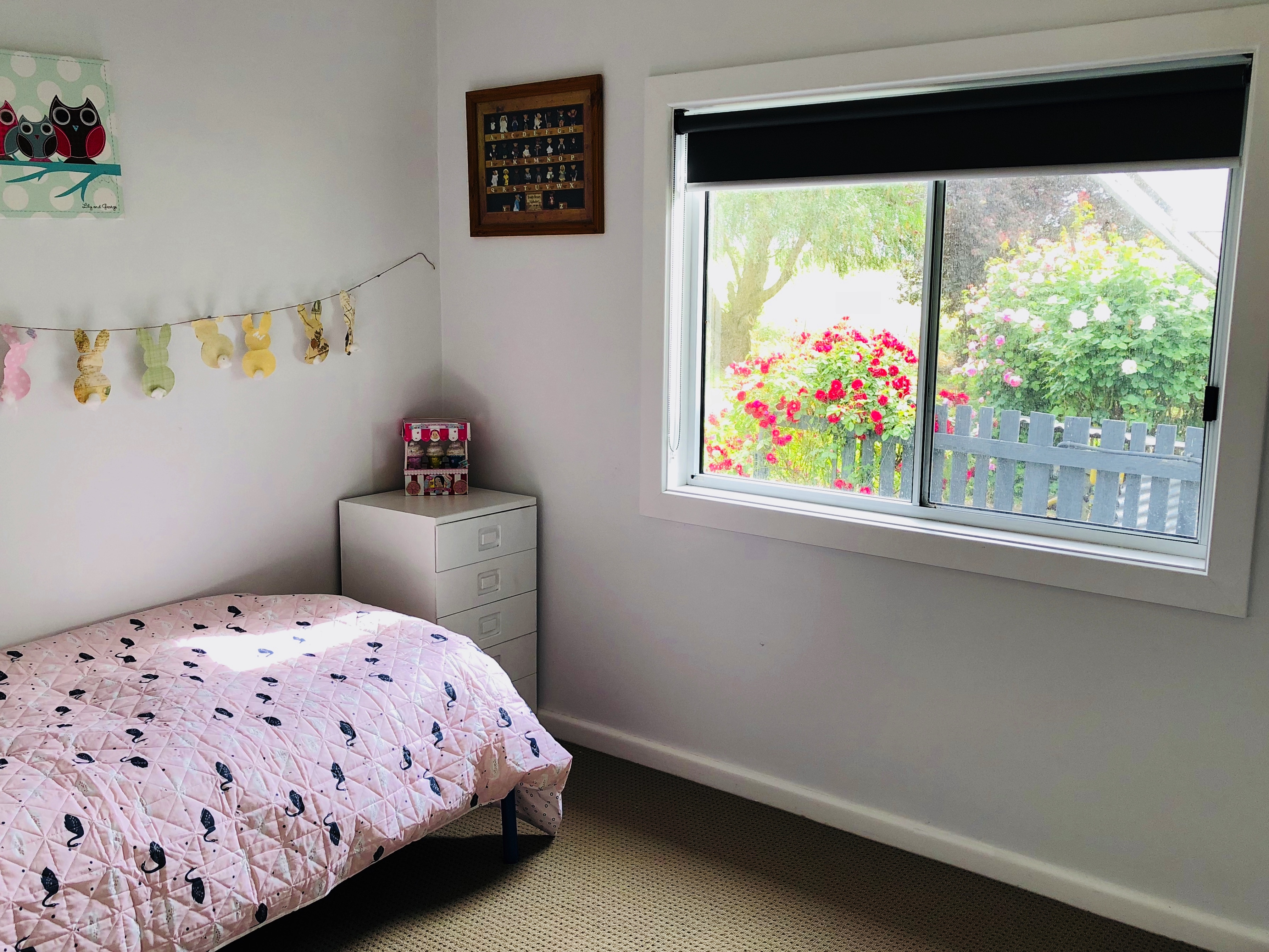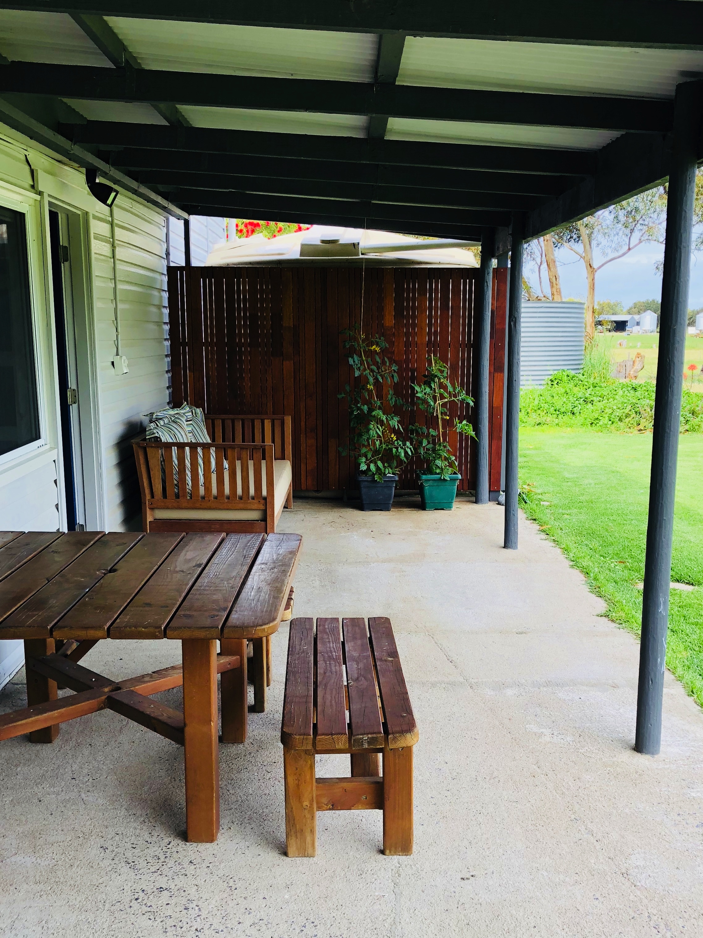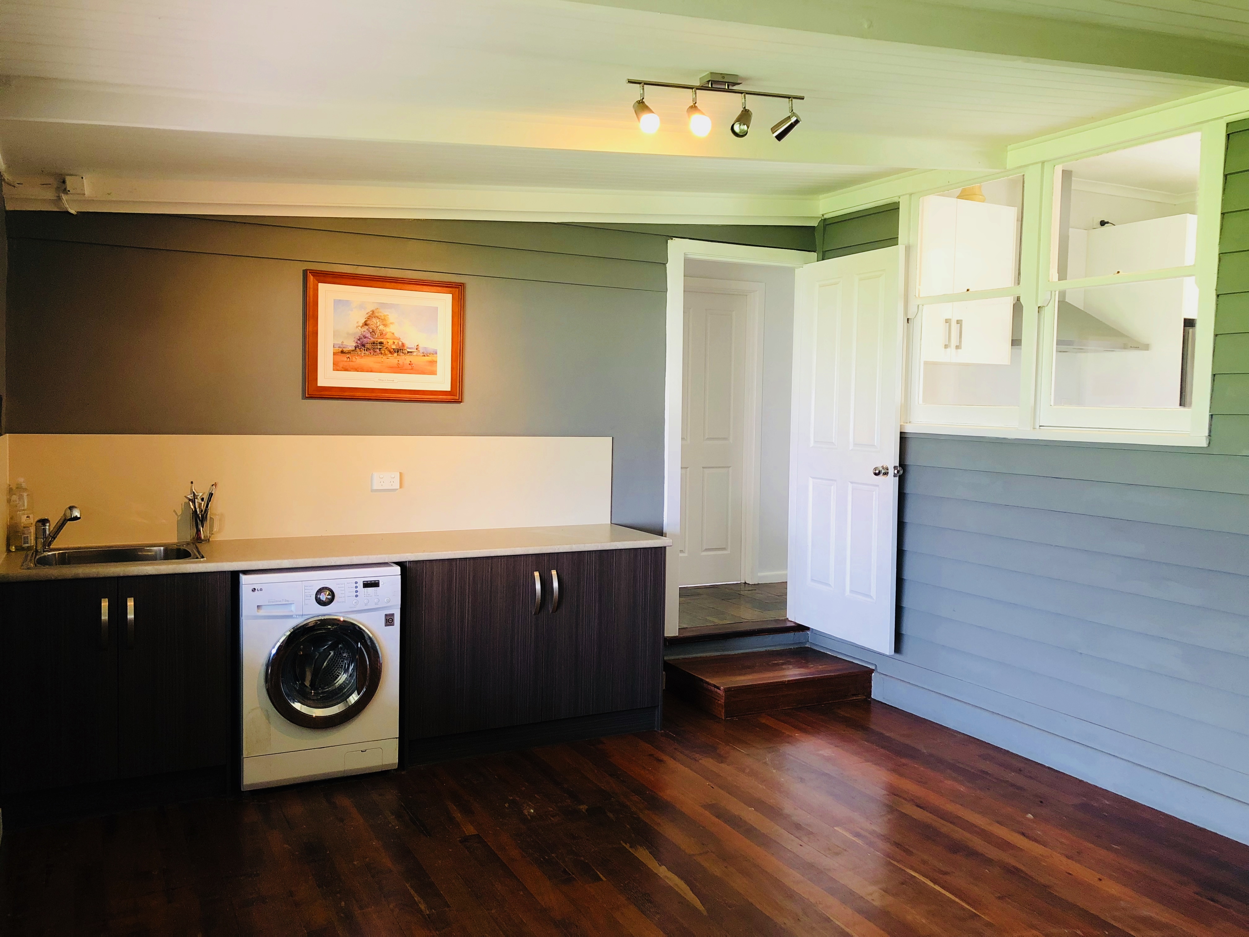 The huge lounge opens up from the kitchen area and is ideal for year-round comfort with slow combustion heating and reverse cycle air-conditioning. The bathroom offers a toilet and shower and has been recently refreshed. As you walk through the back door of the home you’ll be greeted with a large open area which could be used as a children’s play area, office space or storage room. This room is also is fitted with a laundry with built in cabinets and offers gorgeous timber floors and exposed timber ceiling.