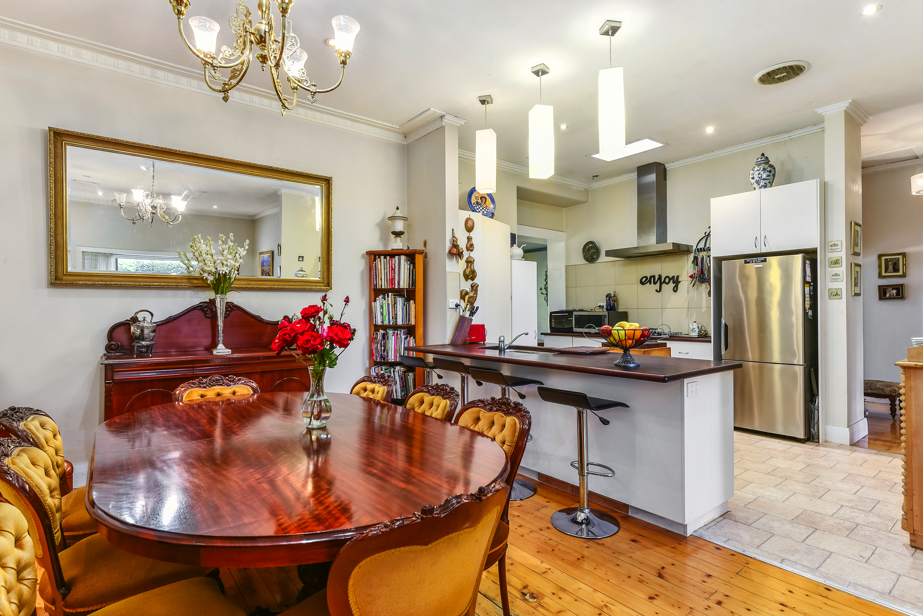 You’ll be immediately impressed as you walk into a light filled feature entrance/sitting area which overlooks the attractive front garden. Continue to be amazed by stunning features including timber floorboards, decorative etched glass at the entry, feature cornices and large windows letting in the beautiful Northern light.